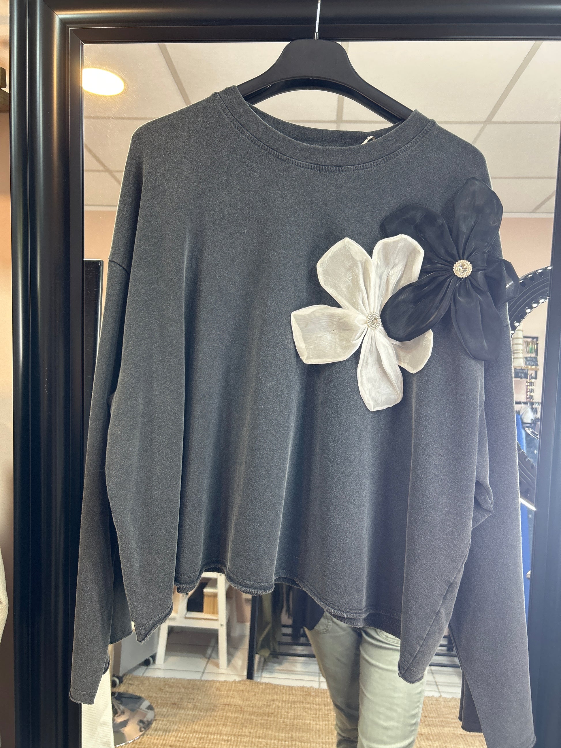Pull fleurs brodées