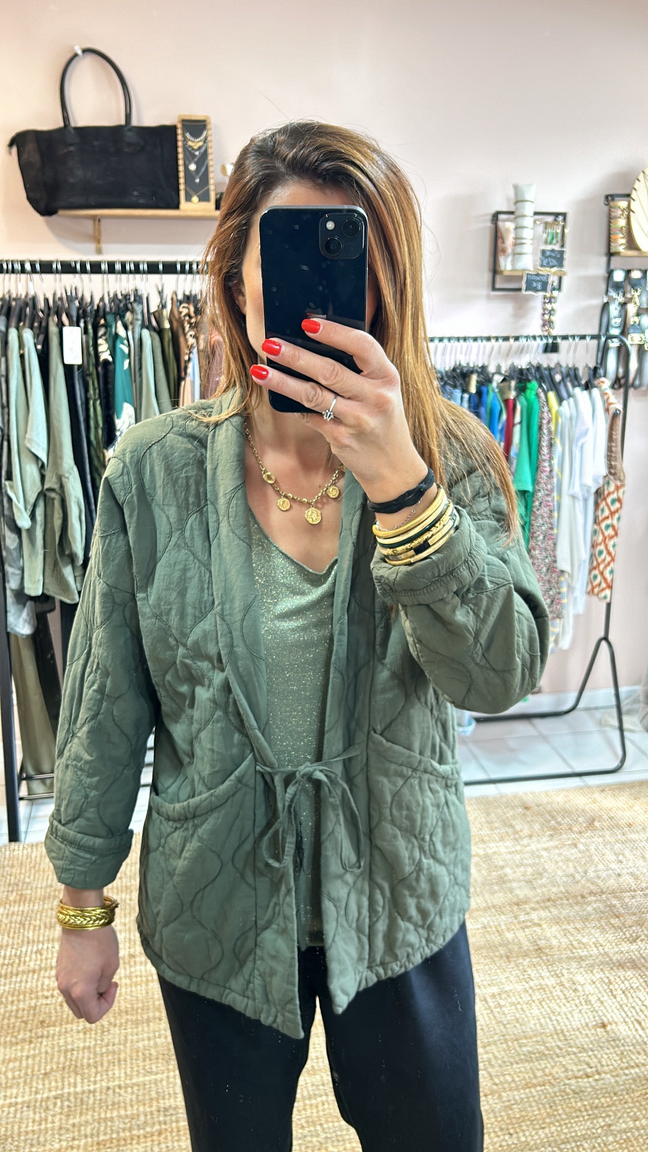 Veste matelassée noeud - kaki